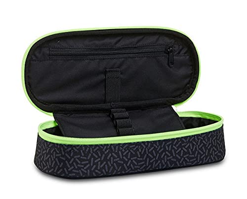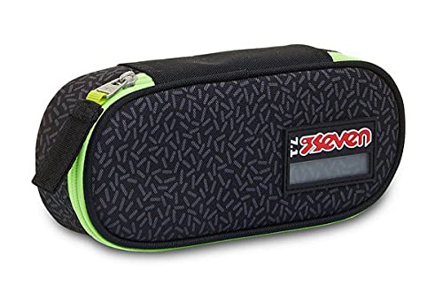 Astuccio Scuola Ovale Organizzato Seven Round Plus Freethink Boy Nero Linee Verde 23x9x5 cm