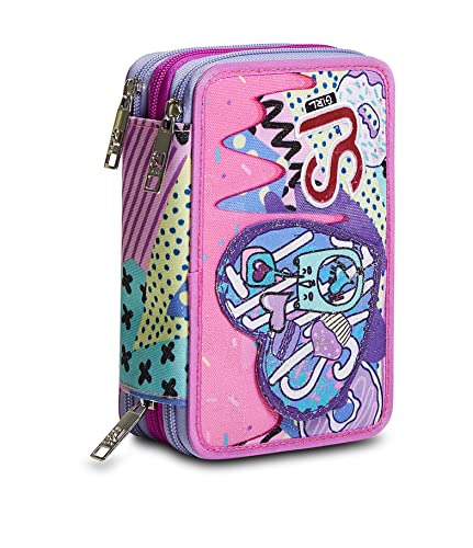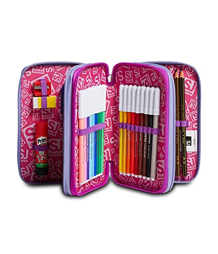 Astuccio Scuola SJ 3 Scomparti - Have Fun Girl Bambina - Completo di Matite, Pennarelli - Rosa con Flip System