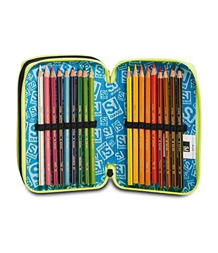 Astuccio Scuola SJ 3 Scomparti - Gamingled Boy Bambino - Completo di Matite, Pennarelli - Azzurro, Verde