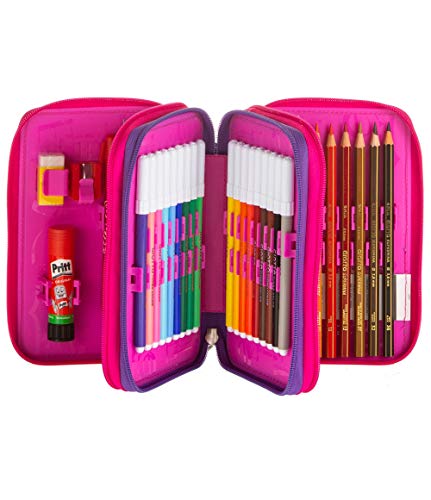 ASTUCCIO scuola SEVEN - FANTASY - 3 scomparti - LAVABILE - pennarelli matite gomma ecc. Viola
