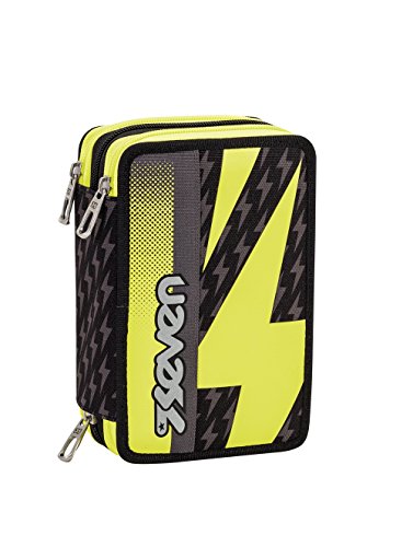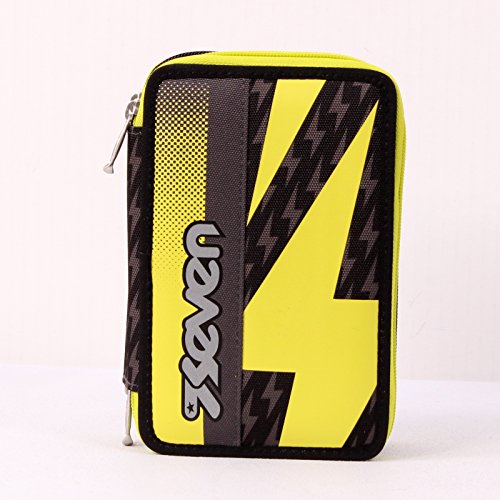 ASTUCCIO scuola SEVEN - FLASH UP - 3 scomparti - pennarelli matite gomma ecc.. Nero Giallo