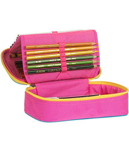 ASTUCCIO Scuola SEVEN - SJ TOP FRIENDS - QUICK CASE - Rosa - pennarelli matite gomma ecc.