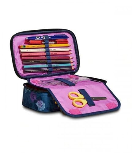 CONTENUTO: 45 pezzi: 1 penna cancellabile blu, 1 penna a sfera rossa, 18 pennarelli Giotto Turbo Color, 18 pastelli a colori Giotto supermina, 1 matita Lyra, 1 colla stick Pritt, 1 gomma, 1 temperino, 1 righello trasparente, 1 goniometro trasparente, 1 forbice in metallo con maniglia in plastica
