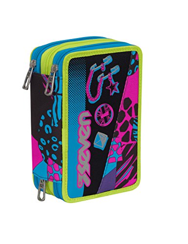 ASTUCCIO scuola SEVEN - SWAG GIRL - 3 scomparti - pennarelli matite gomma ecc.. Nero Azzurro