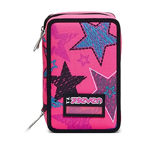 Astuccio Scuola Seven Starbrighting Rosa Triplo Completo 20x12x7 cm