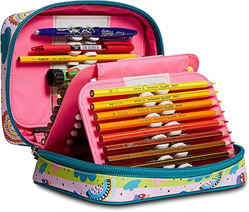 Astuccio Scuola Speed Pad - SJ Colorbow Girl Bambina - Completo di Matite, Pennarelli - Azzurro, Rosa