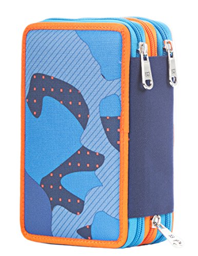 ASTUCCIO 3 ZIP - SEVEN - MIMETICAL - attrezzato con penne, matite, pennarelli ... Camouflage Blu Arancione