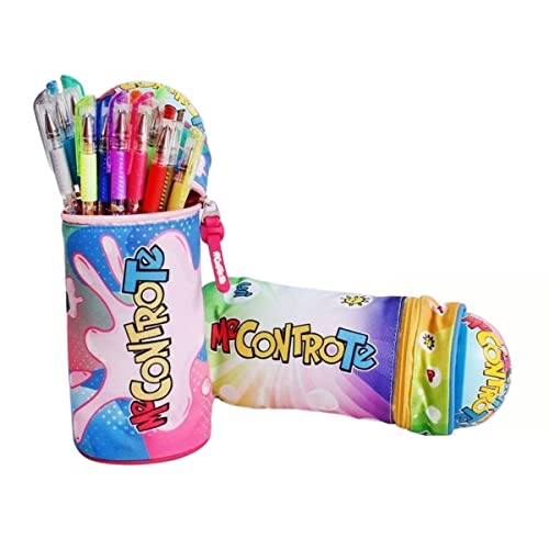 Astuccio Tombolino Verticale Me contro Te con 12 penne glitterate Incluse Blu Verde con Squishy - Chiusura a zip + Omaggio penna colorata