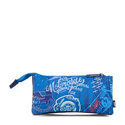 Lois - Astuccio, triple. 3 taschi e 2 cernieri. Molto resistente. Poliestere. Design 54211, Color Blu