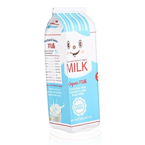Hrph - Astuddio/portapenne a forma di confezione del latte, in poliuretano, motivo Kawaii, acciaio, blu