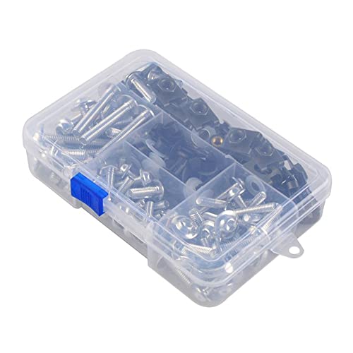 Quantità: 195 pezzi totali, inclusi bulloni a testa cilindrica, bulloni a testa bombata, bulloni a flangia, bulloni per carenatura con rondelle in nylon, elementi di fissaggio per parabrezza e altro.