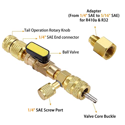 Asudaro R410a R22 Strumento di Installazione per La Rimozione Del Nucleo Della Valvola Da 1/4 E 5/16 di Dimensioni Doppie per R404a R407c R134a R12 R32 con Nucleo Della Valvola 10 5v1 E Dispositivo