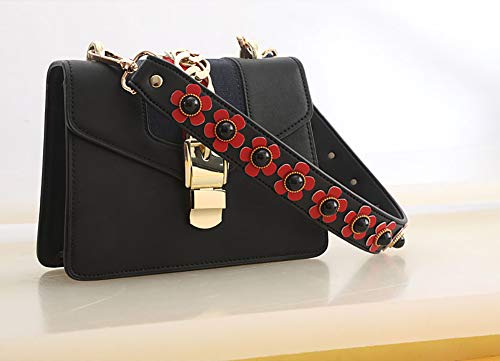 Asudaro Tracolla da donna, 58/43 cm, in pelle, per borse e borsette, con perle, fiori