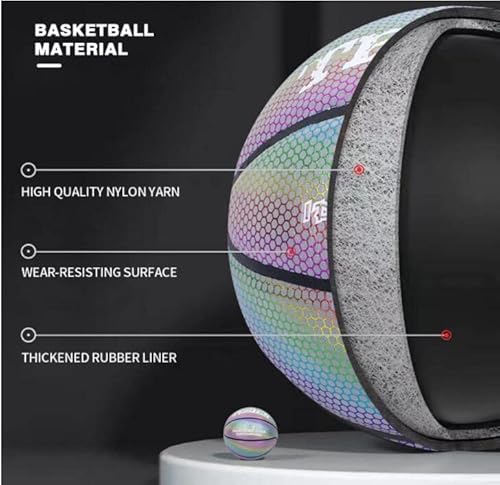 ASUHO Pallacanestro luminoso riflettente incandescente misura 7 per gioco notturno, perfetto Holo Hoops regali giocattoli (riflettente-colorato)