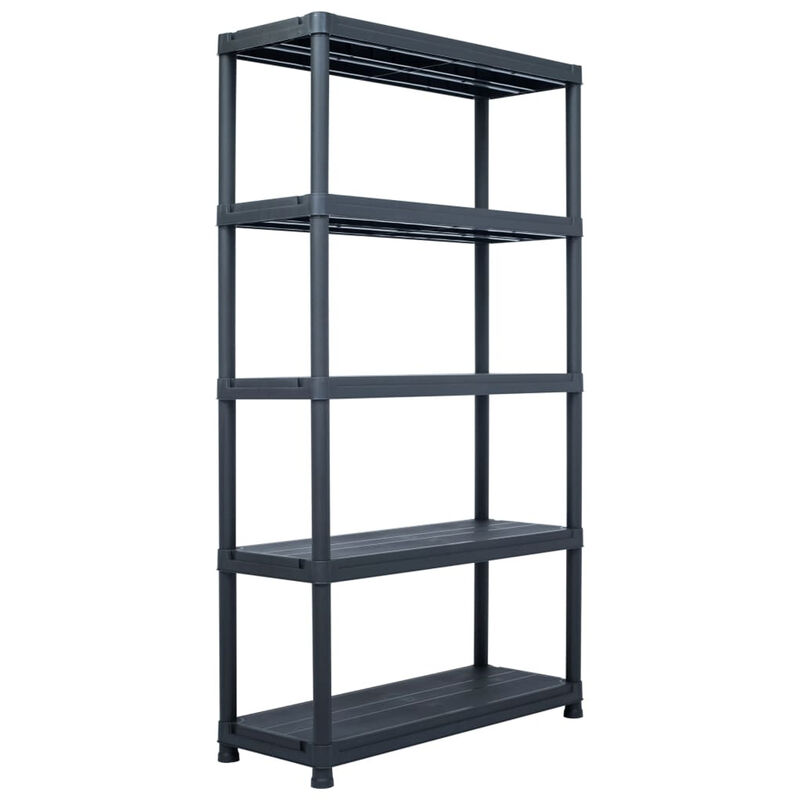 Questo scaffale pu¨° essere utilizzato in salotto come libreria oppure come espositore di oggetti decorativi, o anche sul patio come espositore per piante, ecc. Lo scaffale ¨¨ realizzato in plastica robusta e resistente, per questo si pulisce facilmente con un panno umido ed ¨¨ molto adatto ad ambienti umidi, come cucina, bagno, magazzino e cantina. Caratterizzato da un design compatto, lo scaffale ottimizza al massimo l'uso di spazi limitati. Grazie ai materiali di montaggio inclusi, lo scaffale ¨¨ facile da assemblare. Colore: Nero Materiale: Plastica Dimensioni: 100 x 40 x 180 cm (L x P x A) Con 5 ripiani Capacit¨¤ massima di carico di ogni ripiano: 100 kg Capacit¨¤ massima di carico totale: 500 kg Materiali di montaggio inclusi Certificato T¨¹V-GS ATTENZIONE: Per evitare il ribaltamento questo prodotto deve essere utilizzato con il dispositivo di fissaggio a parete fornito.