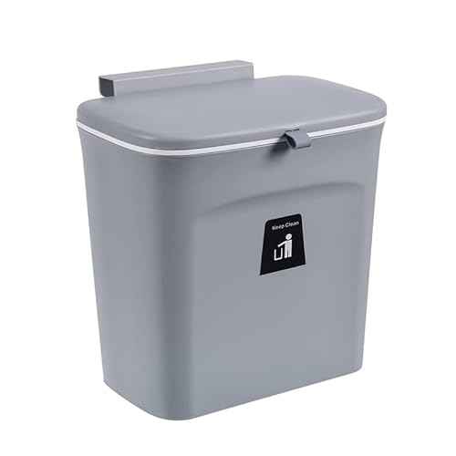Asvert 7L Pattumiera da Appendere con Coperchio, Pattumiera Cucina in Materiale PP Ecologico, Pattumiere Sospese per Armadietti da Cucina Cassetti Camera da Letto Ufficio Auto (Grigio-7L)