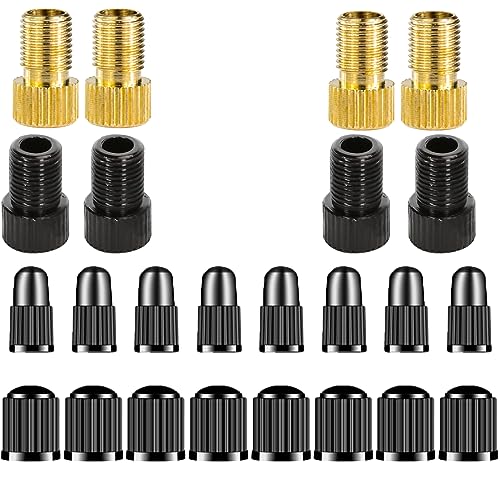 ASYKNM 8 Pezzi Adattatore per Valvola Presta in Ottone con 16 tappi, Convertire Presta in Schrader per biciclette, e-Bike ed e-Scooter - Gonfiare il pneumatico usando una pompa standard
