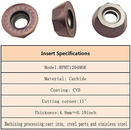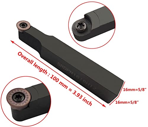 La confezione include: 1 supporto per tornio in carburo di diametro gambo 16 mm SRDPN1616H12, 11 frese per fresatura in carburo RPMT1204 MOE e 1 chiave T15.