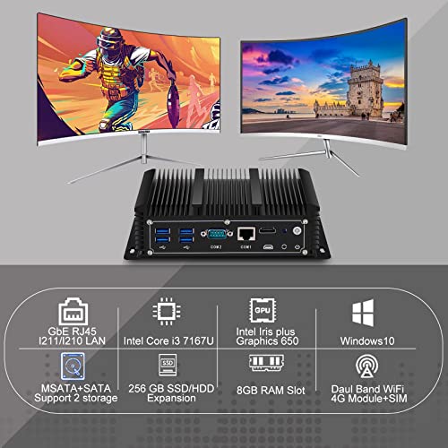 ASZPCY PC Core i5 7267U 3.1G Hz,mini pc,Network Security home Server soft-routing Router PC mini, switch ethernet industrial firewall lan,AES-NI,HDMI,USB, WI-FI, COM (8GB Ram-256GB SSD-core i5 7267U)