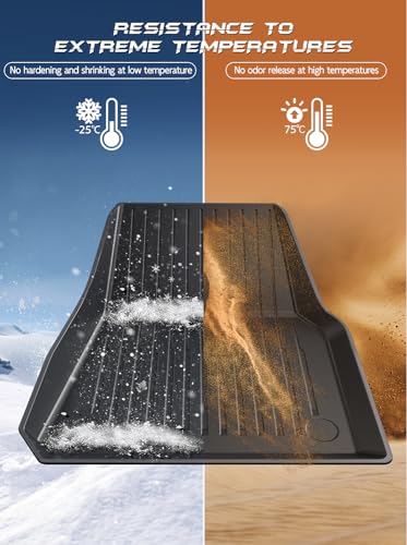 【Protezione Più Completa】- Questi tappetini Model Y hanno bordi rialzati, assicurando che lo sporco e i liquidi accumulati sul tappetini per auto non si diffondono oltre la superficie, rendendo più facile mantenere il pavimento dell'auto in buone condizioni