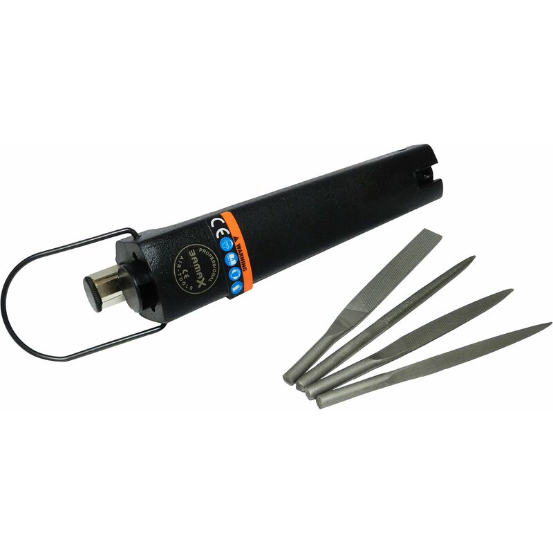 Descrizione Lima pneumatica ad aria compressa per uso professionale e artigianale. Realizzata in materiale composito, viene fornita con 4 lime intercambiabili (piatta, tonda, semitonda, triangolare). Ideale per la sbavatura e la sagomatura, la molatura e la lucidatura. Adatta per uso su materiali come ferro, plastica, elettronica, pressofusione, ecc. BAMAX vanta un'esperienza di oltre 40 anni nell'aria compressa e la nostra gamma utensili é da paragonare ai marchi noti professionale di alta qualità seppur a prezzi molto competitivi.