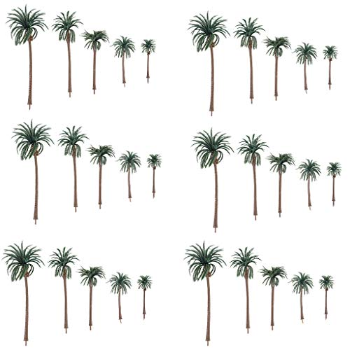 -Il pacchetto include: il pacchetto contiene 30 pezzi di alberi di cocco modello con 5 dimensioni, 6 alberi di cocco modello in ogni dimensione, quantità sufficiente per soddisfare le tue esigenze