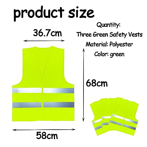 ✅Contenuto della confezione: hai ottenuto tre giubbotti di sicurezza verdi.La lunghezza del giubbotto è di circa 68 cm e la larghezza è di circa 58 cm.La taglia soddisfa la maggior parte delle persone e il numero di tute soddisfa le tue esigenze quotidiane.
