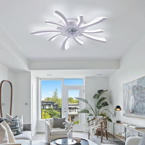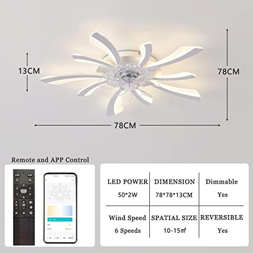 ATEEZ Ventilatore da Soffitto con Luce e Telecomando Silenzioso LED Dimmerabile Moderno Lampadario con Ventilatore 6 velocità Motore Reversibile Smart Temporizzazione Plafoniera con Ventilator-White