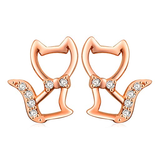 Ategazza"Gatto" Orecchini Argento 925 placcato Oro da Donna con Cristalli piccoli 0.9 * 0.6cm GE02