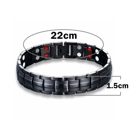 ATEIELLI Bracciale Magnatica per Terapia da Uomo Bracciale Acciaio JWB326 (Nero-Largo)
