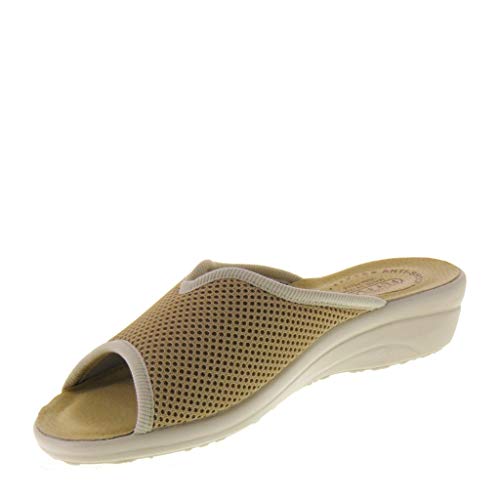 Fly Flot Atella, Ciabatte Donna in Rete Elastica Aperte, Sottopiede Imbottito in Pelle, Sandali, Beige, 40 EU