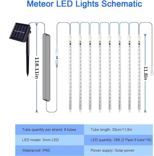 【 Qualità e sicurezza 】With 240 LED super luminosi, il tubo solare della luce della pioggia è lungo 11,8 pollici, che è IP65 impermeabile e antipolvere;