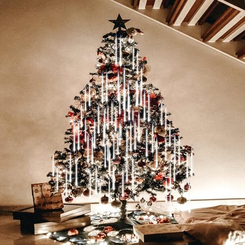 ATFKZADV Luci Della Pioggia di Meteore, con 8 Tubi Luminosi di 30cm, 240 leds, 3.2m Lunghezza,IP65 Impermeabile, Meteor Solari Luci di Natale, per Albero di Natale, Giardino, Interno, Esterno