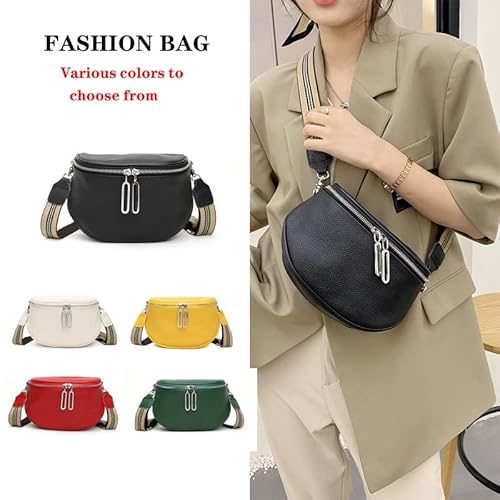 Atgbiem Elegante borsa a tracolla da donna in pelle nera a tracolla larga, nero, Taille unique