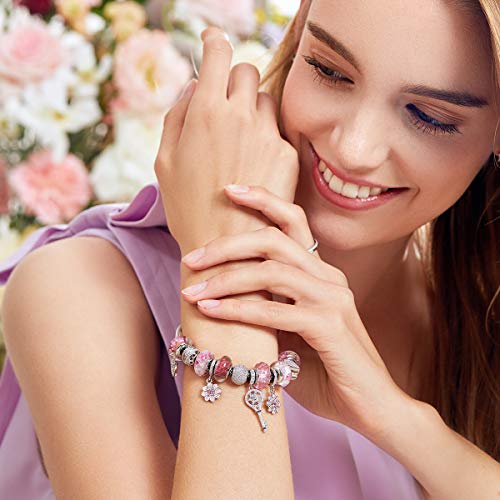 ATHENAIE - Kit di perline in vetro di Murano in argento Sterling 925 con nucleo verde Boemia, adatto per braccialetti e collane europei e Argento, colore: Rosa/argento., cod. AMGB38