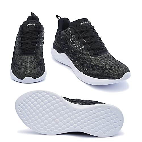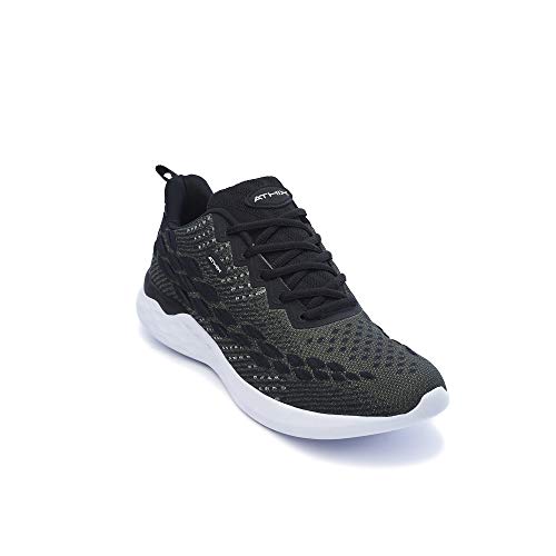 ATHIX Progressive Flexy - Scarpe da Corsa per Uomo, Nero (Nero/Verde Militare), 45 EU - Scarpe Sportive, comode e Traspiranti