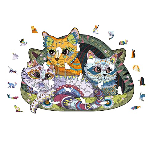AthlChamp Puzzle in legno per adulti e bambini, puzzle in legno, pezzi unici a forma di puzzle, 22.7 x 30 cm, 200 Pezzi, Nido di gatto, Medio