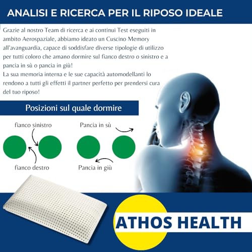 ATHOS HEALTH Tecnologia per la salute e il benessere Guanciale Memory Anatomico Anallergico - Cuscino Letto Automodellante e Termosensibile Collo h12