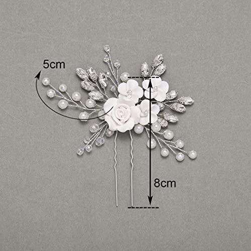 Atigy Fermagli per capelli da sposa con fiore e perle argentate, accessori per capelli da sposa in cristallo per donne e spose