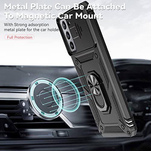 ATISIJIE Cover per Samsung Galaxy S21 FE 5G Custodia, Anti Graffio Hard PC Samsung Galaxy S21 FE 5G Cover con 360° Magnetico Cavalletto Funzione [Protezione fotocamera] Cover Originale Nero