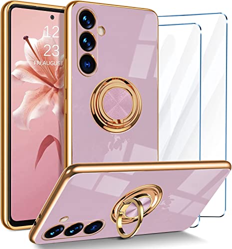 ATISIJIE Cover per Samsung Galaxy A54 5G Custodia con 2 Pellicola Protettiva in Vetro Temperato, 360° Girevole Supporto Magnetico per Auto, Antiurto Ultrasottile da Donna Elegante Guscio Viola