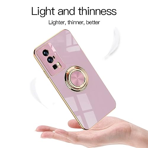 ATISIJIE Cover per XiaoMi Redmi Note 10 Pro 5G/POCO X3 GT Custodia, Supporto Girevole a 360°, Supporto Magnetico per Auto,Flessibile TPU Antiurto Ultrasottile da Donna Elegante Guscio Rosa chiaro
