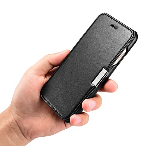 AtKITE - Custodia a libro per iPhone 8 iPhone 7 in vera pelle e in stile luxury - Nero - Design esclusivo - Ultra sottile - Taglio e design precisi - Artigianale