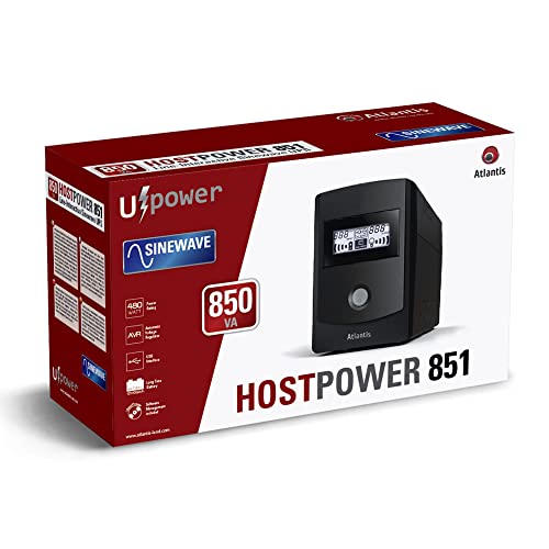 Atlantis A03-HP851 850VA UPS, 480W, Sinewave Line Interactive Technology, Display LCD e LED stato UPS, Nero