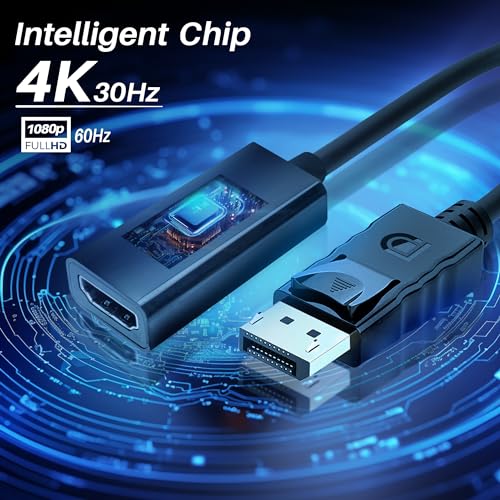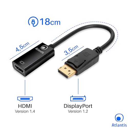 ATLANTIS A04-DP_HDMI adattatore Display Port (DP) a HDMI, 4K 1080p 60 Hz, maschio-femmina per connettere PC/Notebook/MAC con uscita Display Port a Monitor,Projettore con ingresso HDMI. Cavo 18 cm.