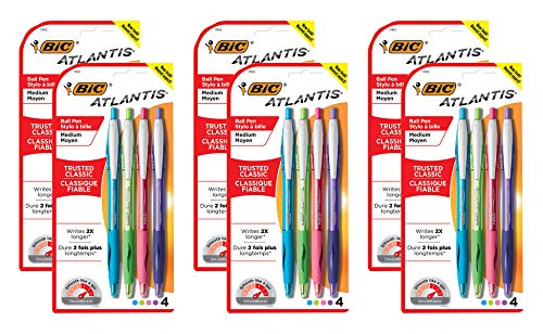 BIC Atlantis Original Retractable Ball Pen, Medium Point (1.0 mm), Blue, 12-Count