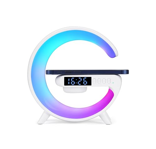 DECO Atmosfera luce Notturna Caricabatteria per Telefono Wireless Altoparlante Bluetooth Sveglia Tutto in una Lampada da Tavolo a LED per Camera da Letto, Soggiorno, Ufficio (BT34)