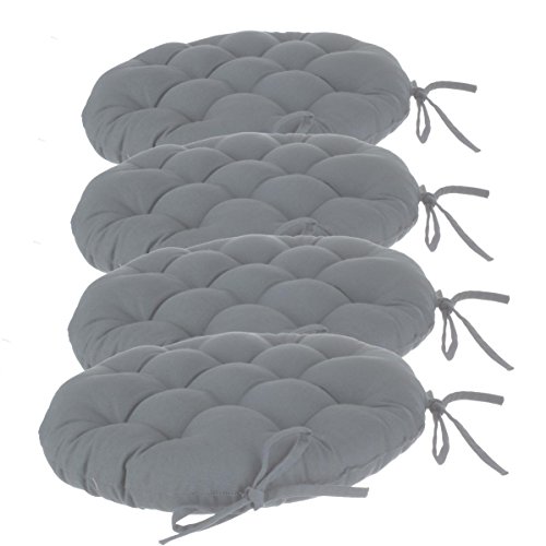 Atmosphera Set di 4 Cuscini da Sedia Rotondi con Attacco - Diametro 40cm - Imbottito e 100% Cotone - Colore Grigio