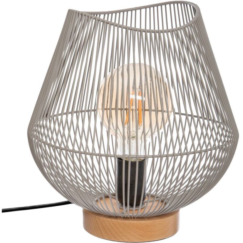 Lampada da tavolo dallo stile moderno. La base è realizzata in legno con un paralume stilizzato in metallo effetto griglia ondulata. Ha un cavo in PVC lungo 185cm per l'alimentazione. Tipo di lampada: 1xE27 e posto per 1 lampadina fino a 40W (non inclusa).