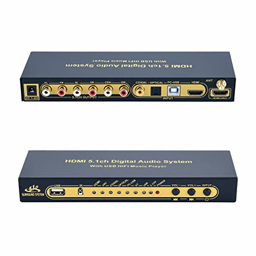 ATNEDCVH Estrattore separatore decoder 5.1 compatibile con DTS AC3, HDMI 2.0b 4K 60Hz HDCP 2.3 HDR 3D, sistema audio digitale analogico audio video surround 192 Khz/24 bit per film, giochi, musica